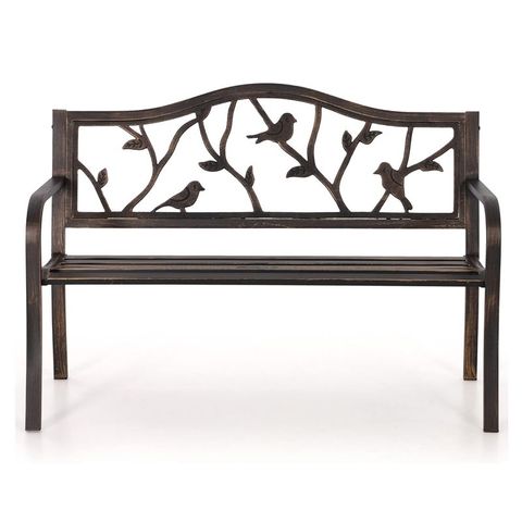 Outdoor Garden Park Patio Metal Bench, Steel Frame Bench with Backrest and Armrests for Porch, Lawn, Balcony, Backyard.